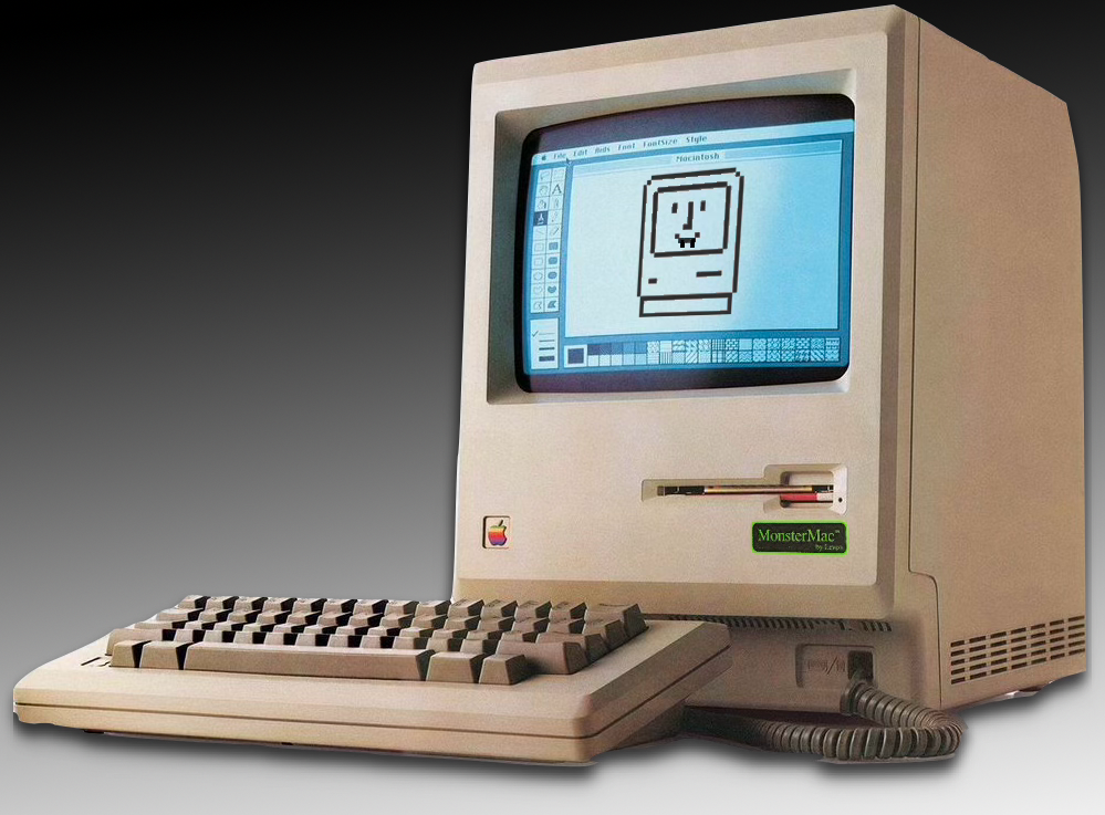 Following on the Prodigy, Levco released the MonsterMac: an upgrade for the Macintosh that added a whopping 2 megabytes of RAM and an interface compatible with the emerging category of SCSI (‘Small Computer System Interface’, pronounced “scuzzy”) hard drives. When installed into a Macintosh, the MonsterMac literally clips onto the motherboard, connecting the additional memory and SCSI connectivity directly to the Motorola 68000 CPU. Although the MonsterMac upgrade offers impressive specs and real tangible benefits to its owner, one particular quirk of its design has made it far more memorable than most of its competitors: inspired by its “vampire” relationship with the Mac’s CPU, a MonsterMac-equipped Macintosh’s iconic “Happy Mac” boot image is subtly modified to feature fangs!