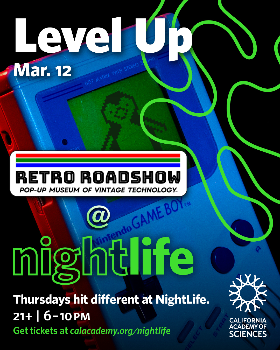 The Retro Roadshow is excited to be participating in California Academy of Sciences March 12th, 2026 “NightLife: Level Up!” In keeping with the “Level Up” theme, The Retro Roadshow will be sharing a curated exhibition of retro games on vintage computers and classic video game consoles, each paired with an authentic CRT (aka “tube style”) display. This exhibition will feature a mix of familiar classics like Atari, Nintendo, Sega, and Nintendo, along with some “hidden gems” that are sure to delight gamers of all ages and backgrounds. Don’t miss it!