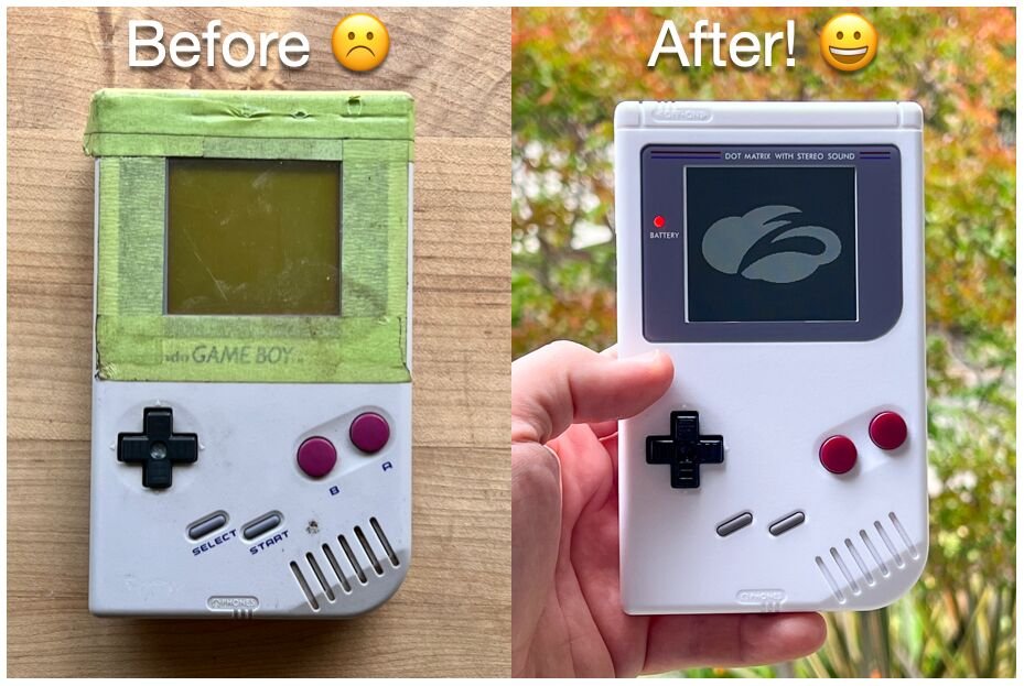 Literally all that remains of the original Game Boy is the motherboard and the grey Start + Select buttons - every other piece of the system has been replaced / upgraded. I cannot get over how great my Game Boy games look now, compared to the blurry, washed-out original display. Of course, the most beautiful game of all is Super Zero Trust Adventure… 😁