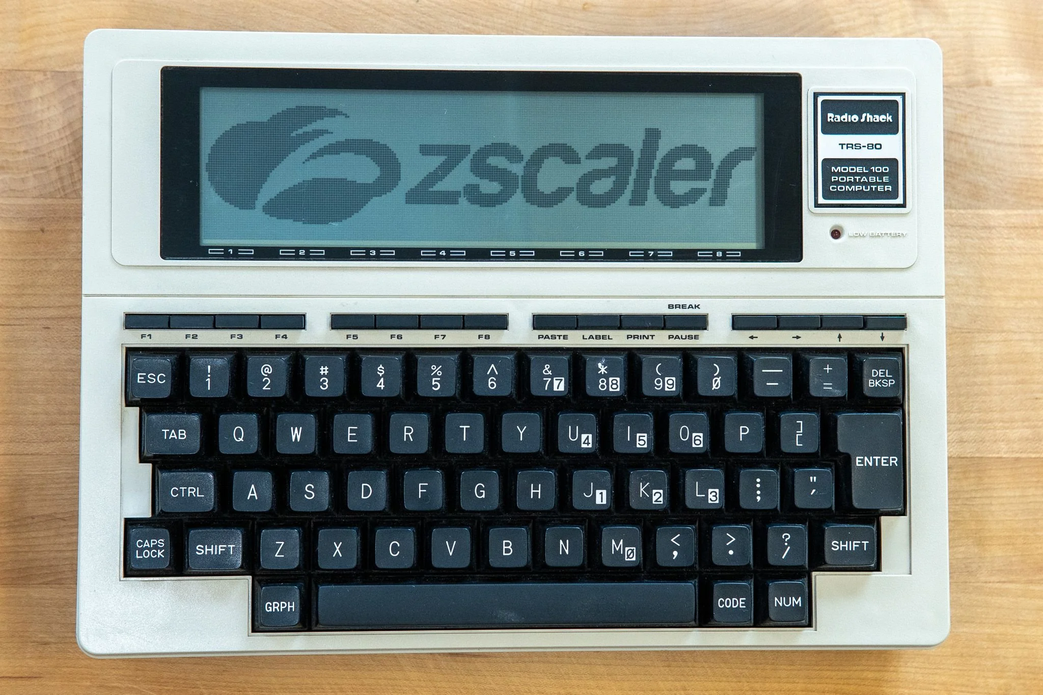 For 2023’s first entry in my never-ending “Zscaler Logo on an Old, Unusual or Obsolete Device” series, I’m delighted to present one which until recently I thought would be impossible: the TRS-80 Model 100!